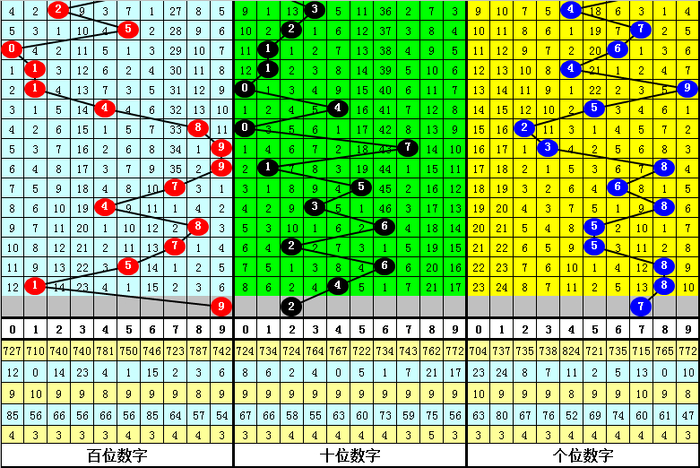 跨度分析:最近5期分别开出跨度:5、3、5、3、7,本期防跨度7重复开出。